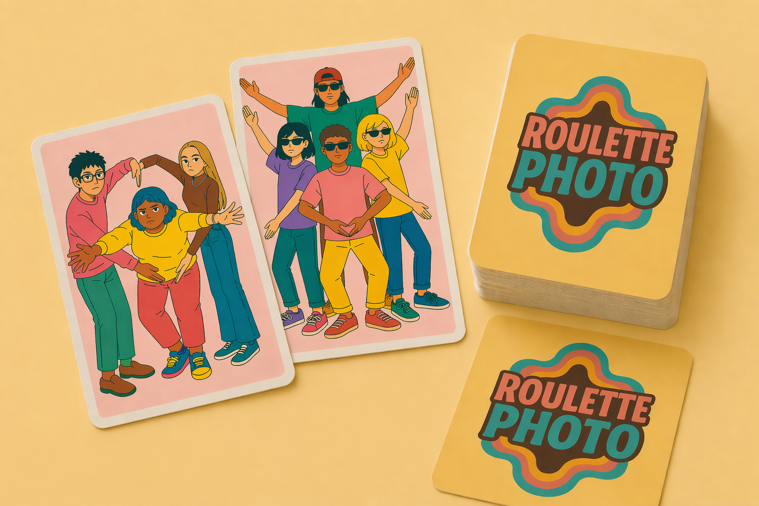 Le principe est simple : on tire une carte, on reproduit la pose en groupe, quelqu’un prend la photo. C’est ringard, c’est assumé, et c’est exactement pour ça que ça marche.